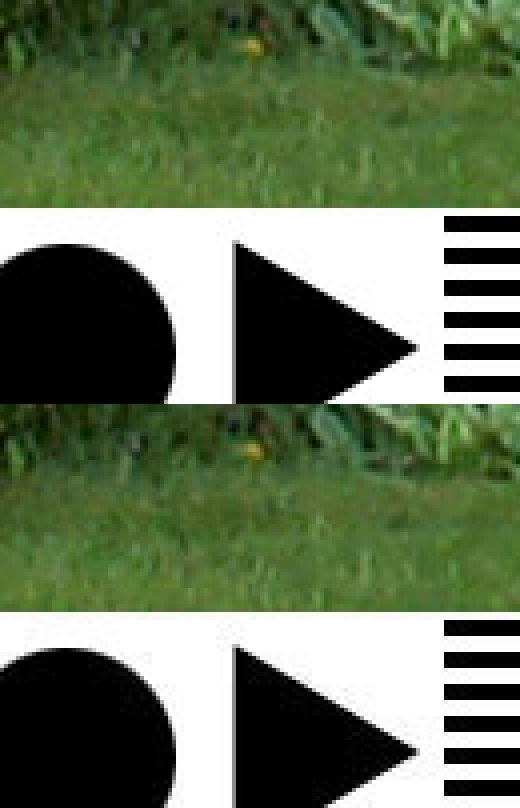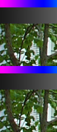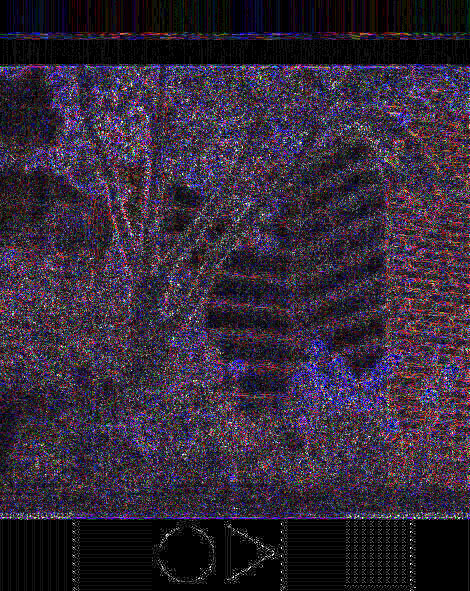 As you can see, recompressing images ten times really does not change an image much. It is still a good idea not to continuously recompress an image. The best way to work with an image is to save as an uncompress Adobe Photoshop document (.PSD) so that all your layers, styles, masks, transparency, etc. are saved, then save as a JPEG for your final output. If you want to play around with the compression using your own images, use Adobe Photoshop's "Save for Web..." option and select the 2-up or 4-up mode with different compression settings. Adobe Photoshop 6 also gives you a preview on the compression when you do a regular save as JPEG. You can zoom in on your image and toggle the "Preview" checkbox to see the changes. Now, we get to something very interesting. Click on the image below (332 kbytes) to view in another window for a more detailed look. This is a "difference" on the same image compressed at a quality of 8 and 12 with the levels adjusted to see the changes. This is a pretty cool image. You can see that quick changes in color have more loss than smooth color changes. Look especially at the shapes at the bottom on the image. High contrast color changes are not compressed well as a JPEG, even at a high quality setting, although it is useable. Keep that in mind when you save a scanned document with a mix of text and photo content. |