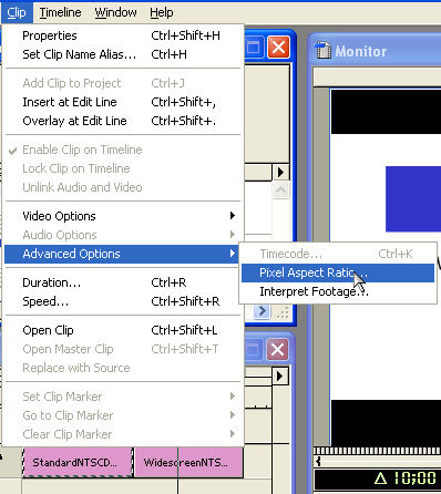 3) Select the clip you want to change in the project window and select the menu option "Clip -> Advanced Options -> Pixel Aspect ratio..."